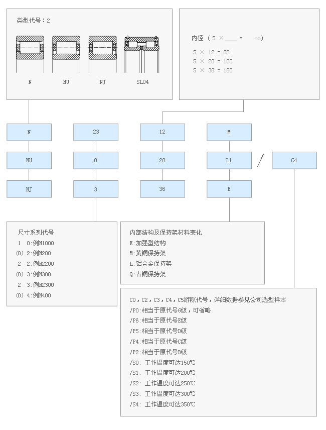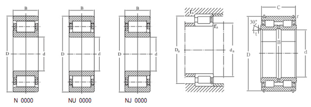 3. N型及NU型可轴向移动,能适应因热膨胀或安装误差引起的轴与外壳相对位置的变化,可作自由端支承使用。