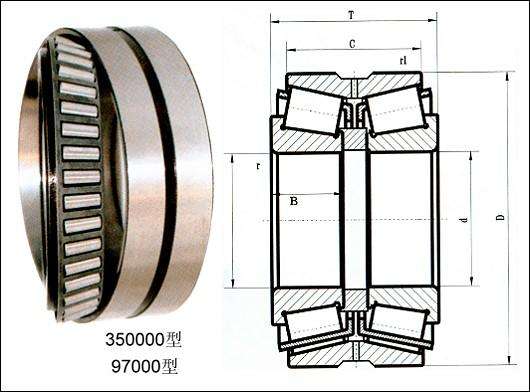 双列圆锥滚子轴承的外圈(或内圈)是一个整体。两个内圈(或外圈)小端面相近,中间有隔圈,游隙是靠隔圈的厚薄来调整的, 也可用隔圈的厚薄来调整双列圆锥滚子轴承的预过盈。